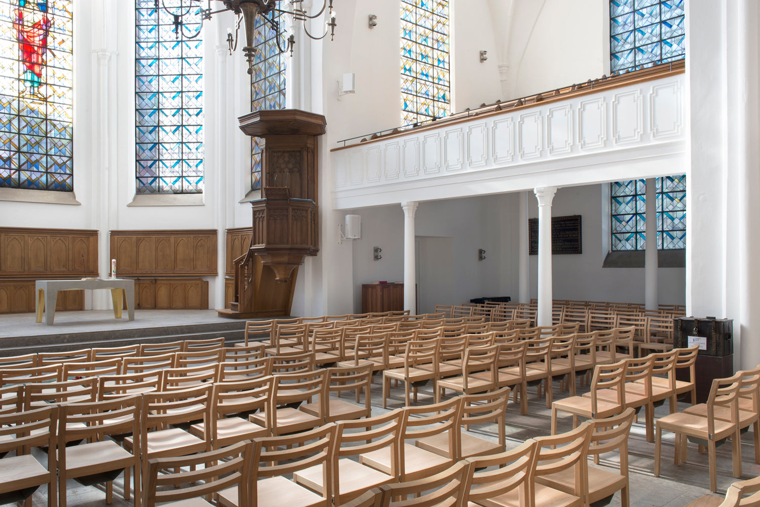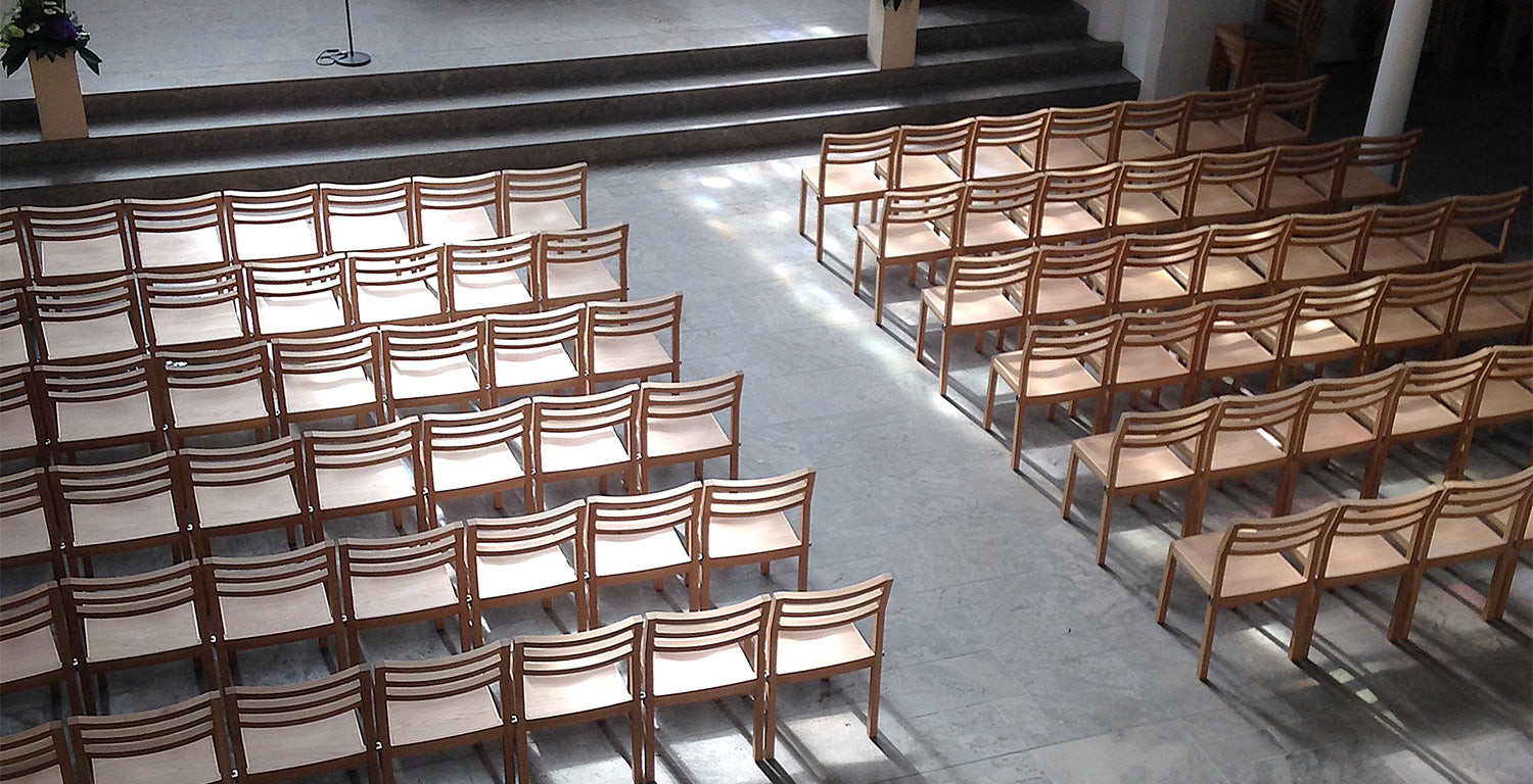 CHAIR MOD.3 Entwurf und Umsetzung für die Stadtkirche Moers. Auf Anfrage erhältlich in verschiedenen Ausführungen.