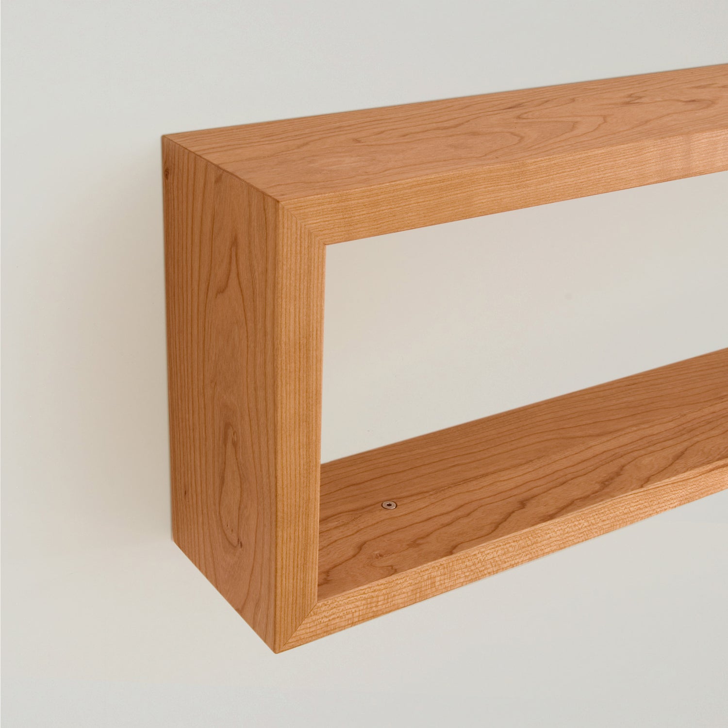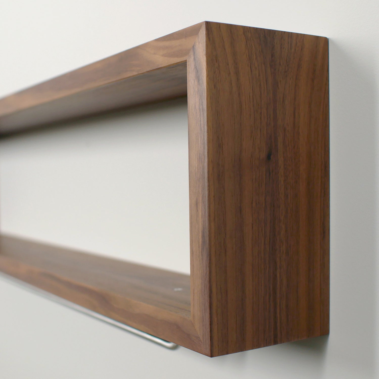 Unser Shortboard beeindruckt mit hochwertigem massivem Edelholz und der besonders feinen und präzisen Verarbeitung mit nahtlosen Gehrungsverbindungen - das ist nicht nur ästhetisch auf höchstem Niveau, sondern auch qualitativ im Sinne der Haltbarkeit und Belastbarkeit. Das für die Shortboards verwendete Massivholz besteht nicht wie meist zu sehen, aus vielen kleinen verleimten Stücken, sondern aus sogenannten durchgehenden Lamellen mit ununterbrochenen Maserungsbildern auf der gesamten Länge. Die Kombination aus Material, Verarbeitung und Konstruktion ermöglicht eine schwere Ladung, garantiert ohne zu kippen. Dank der auf der Rückseite eingearbeiteten Stahlbeschläge erfolgt die letztendlich unsichtbare Aufhängung schnell und einfach an drei Schrauben.